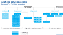 - Since 2019, we adjusted our range of aliphatic polyisocyanate products to ensure they meet the highest safety standards. Most of these now have less than 0.1% diisocyanate concentration – meaning the new requirements do not apply to these products, and their use can safely continue in the same way.