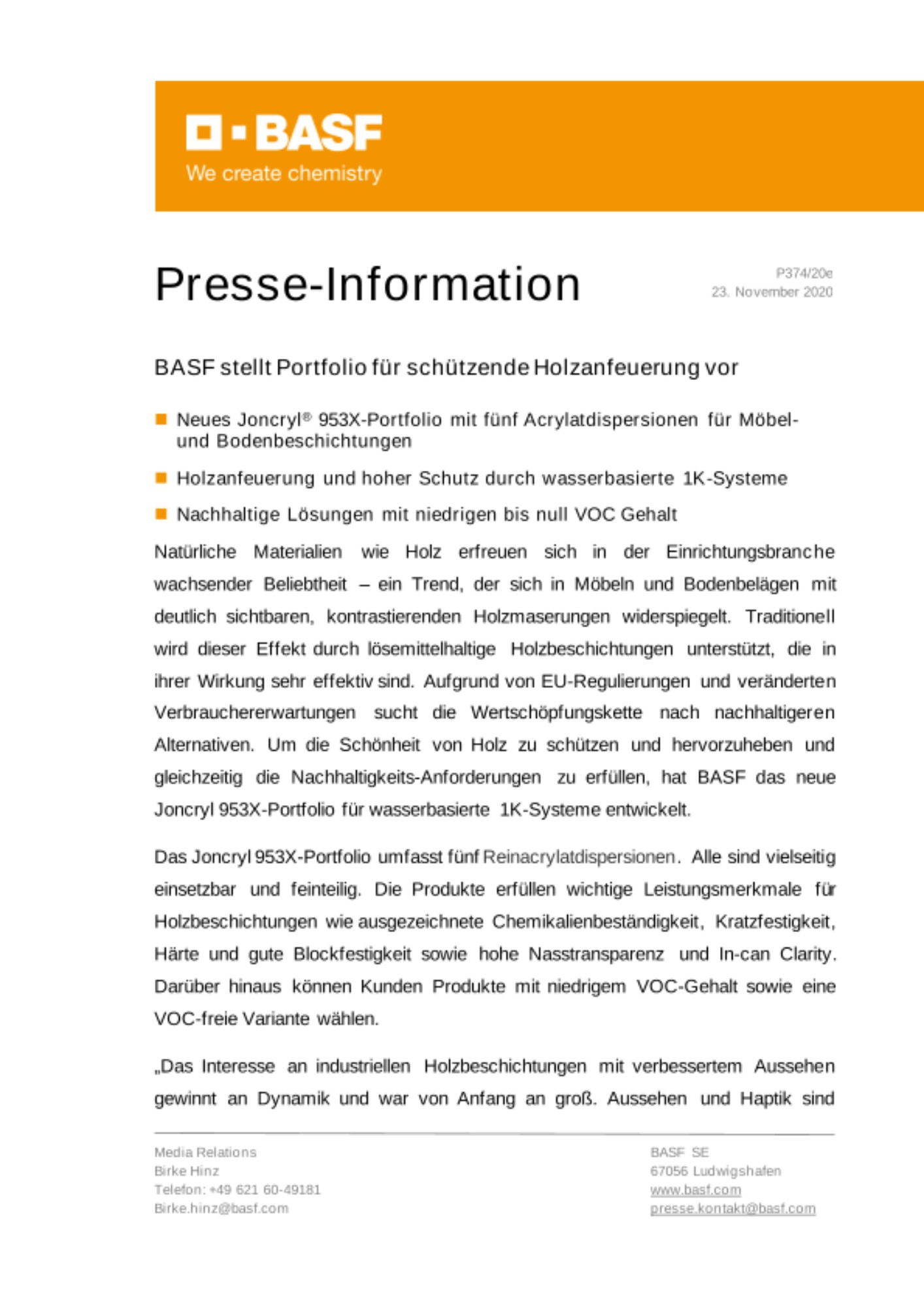 - New Joncryl® 953X portfolio with five acrylic dispersions for furniture & floor coatings