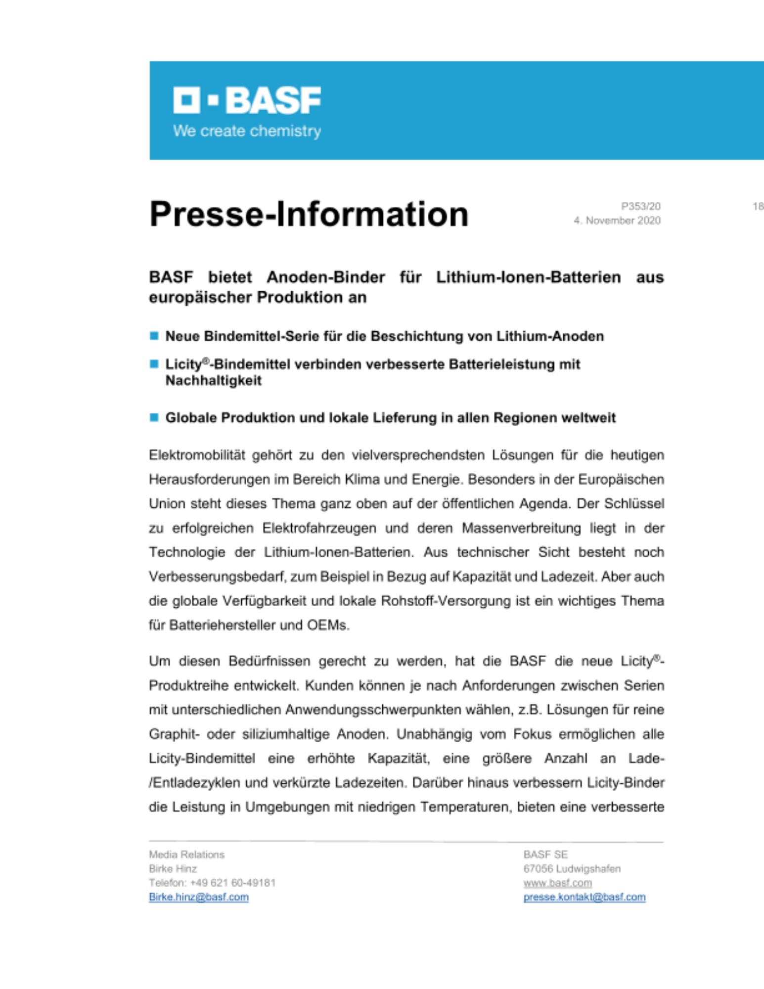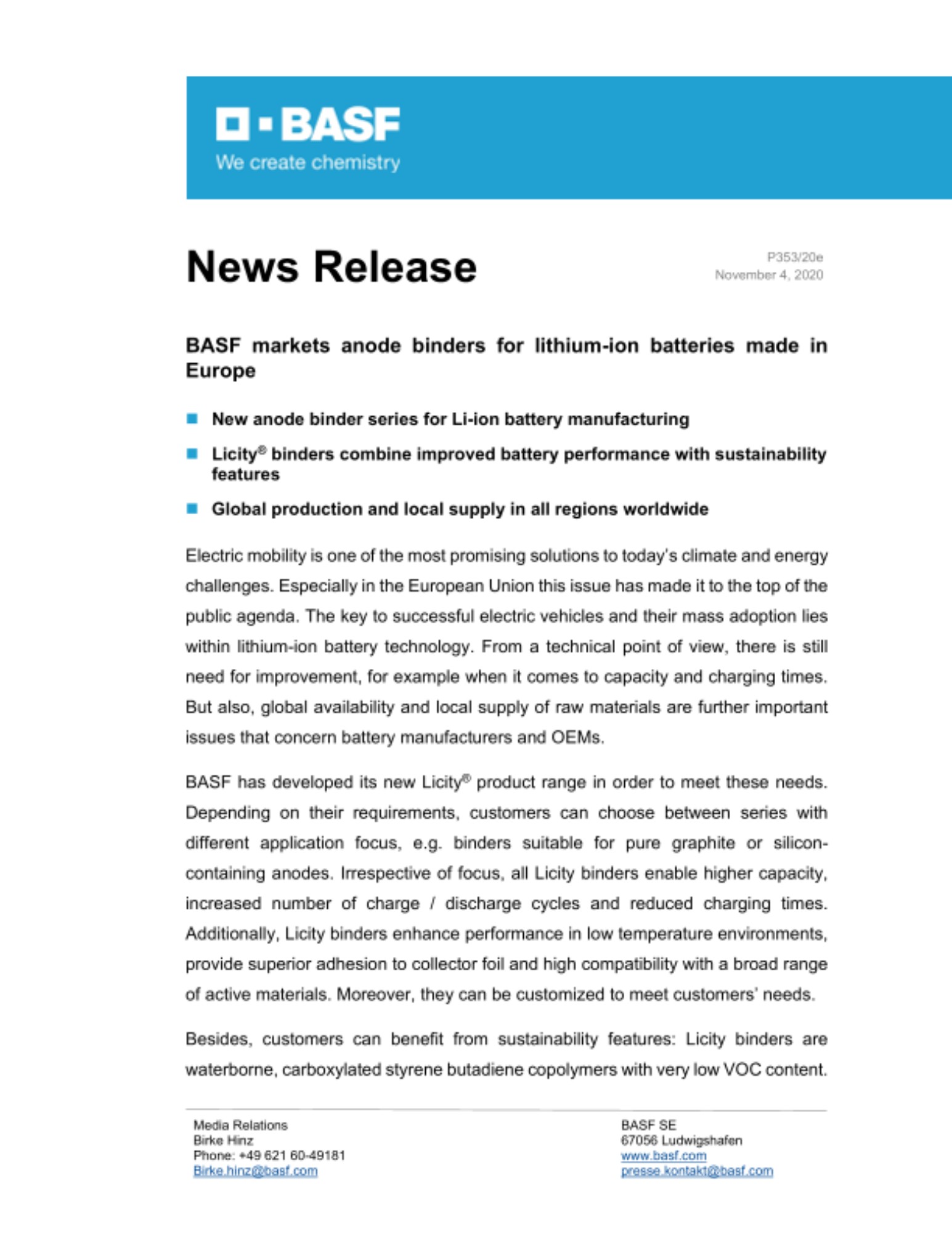 More information about the Licity binders can be found here: www.basf.com/licity-battery-binders