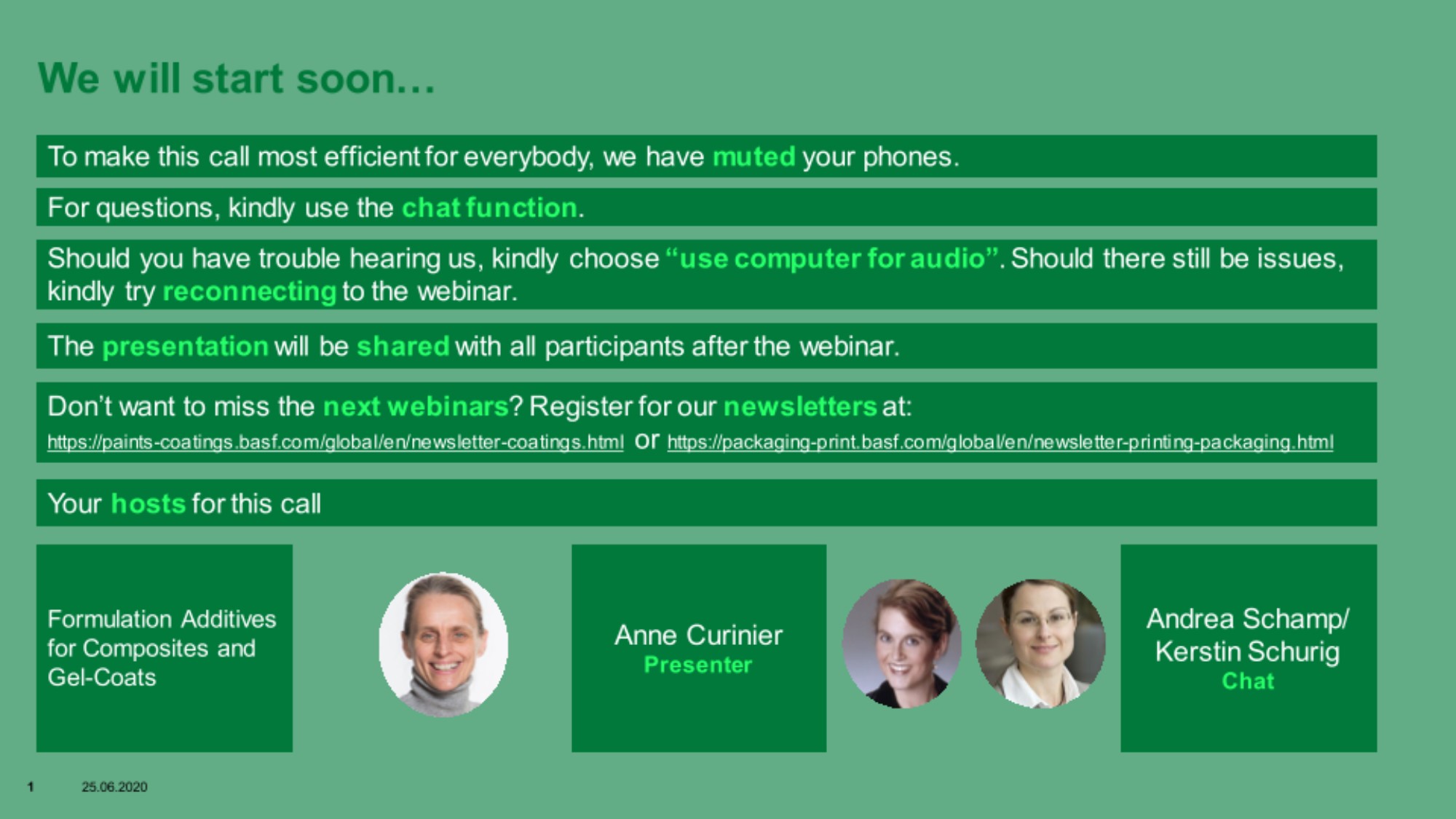 Presenter: Anne Curinier, Technical Sales Additives EMEA