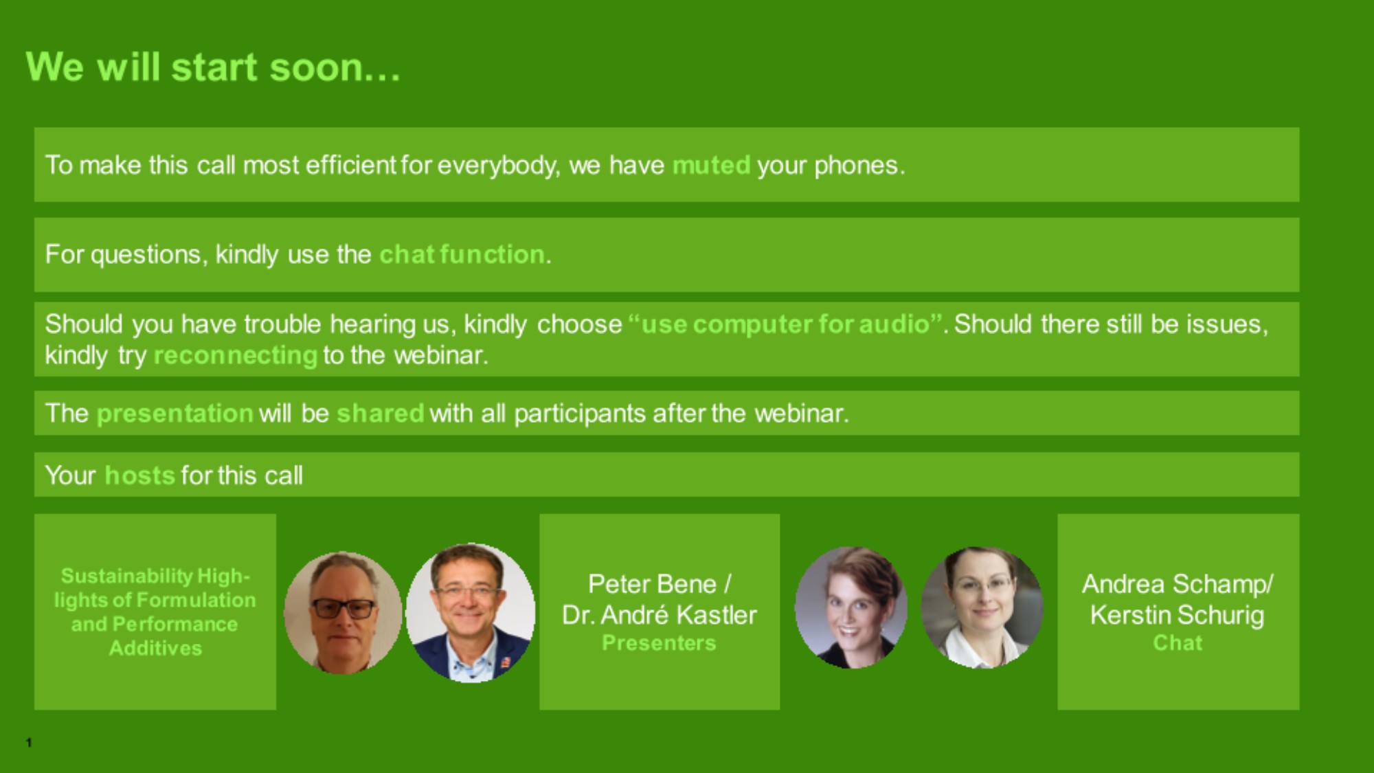Presenter: Peter Bene, Technical Sales Additives EMEA, Dr. André Kastler, Head of Technical Sales Performance Additives EMEA