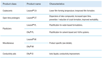 Our coalescing agents and plasticizers deliver high performance coupled with extremely low VOC content. We also provide a complete range of opentime prolongers based on renewable raw materials. Different chemical compounds and functional groups enable you to fine-tune your formulations for specific properties, including low film-forming temperatures, increased plasticization, reduced brittleness and improved adhesion.
